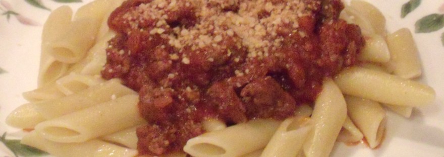 Cook pasta according to package directions. While pasta is cooking, brown ground beef and break it into small pieces in a skillet over medium-high heat. Cook ground beef until it is no longer pink. Drain grease out of the skillet, if there is any. Mix your favorite spaghetti sauce with the ground beef and let simmer until pasta is done. Drain pasta. Mix with vegetable oil, so it doesn’t stick. The pasta and the sauce contain sugar. Look at the nutrition labels to see how much you can have of each and still stay under 10g sugar. Top pasta with meat sauce and sprinkle with Parmesan Cheese. Have with a glass of water.
