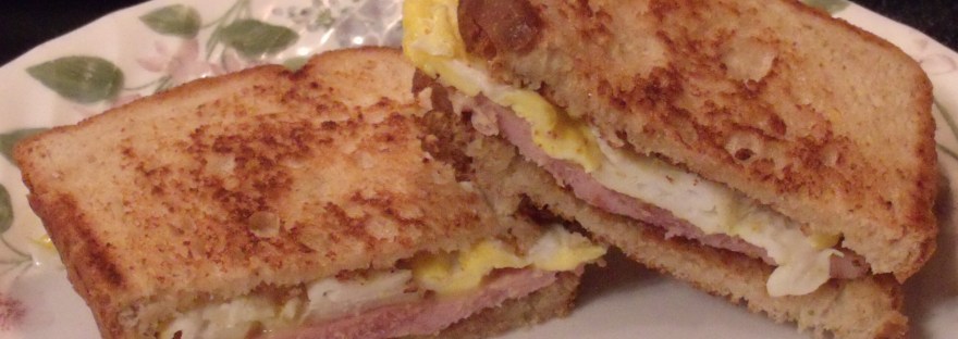 In a microwave safe dish, microwave 1 tablespoon butter until melted. Brush butter on both sides of bread. Toast in a non-stick pan over medium-high heat until golden brown on both sides. In a small non-stick pan, melt ½ tablespoon butter. Crack egg into a small bowl. Break yolk with a fork and stir a few times to slightly combine yolk and egg white. Fry egg in butter until firm, flipping one or two times while cooking. Heat ham according to package directions. Mix mayo, mustard, and honey together. To build the sandwich, spread one side of the toasted bread with half of the mayo, mustard, honey mixture. Top with egg and ham. Spread the ham with the rest of the mixture and top with the other slice of bread. Have with a glass of juice from one freshly squeezed orange (not pictured) or a glass of water.