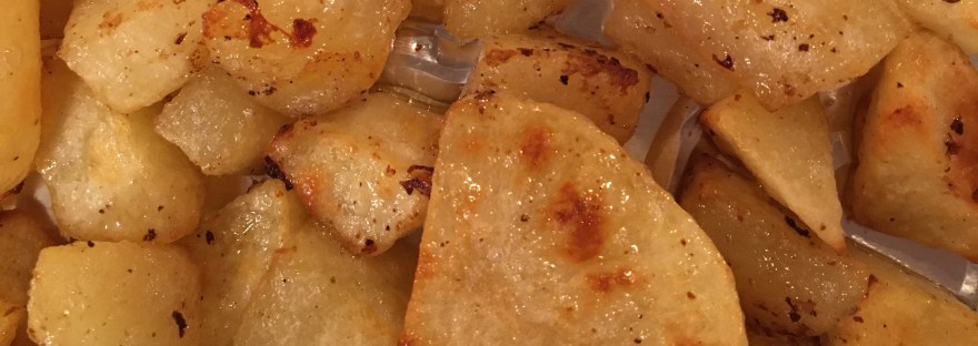 Preheat oven to 375 degrees. Put butter in a large microwave safe bowl and microwave until butter is melted. Wash, peel, and cut potatoes into bite-sized cubes. Put potatoes in the bowl with the melted butter. Sprinkle potatoes with seasoned salt. Stir until well combined. Put seasoned potatoes and butter in a foil lined baking dish. Bake potatoes for 17½ minutes. Stir and flip potatoes. Bake for another 17½ minutes. Stir and flip potatoes again. Broil on high for 10 minutes or until golden brown. Have with a good source of protein.