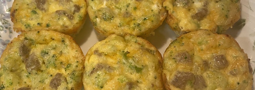 Preheat oven to 350 degrees. Microwave sausage and broccoli according to package directions. Cut sausage and broccoli into small pieces. Whisk eggs and milk together. Stir in sausage, broccoli, and cheese until well combined. Brush butter in non-stick muffin tin cups. Pour 1/3 cup egg mixture in each muffin cup. Bake for 25 minutes. Have with a glass of water.